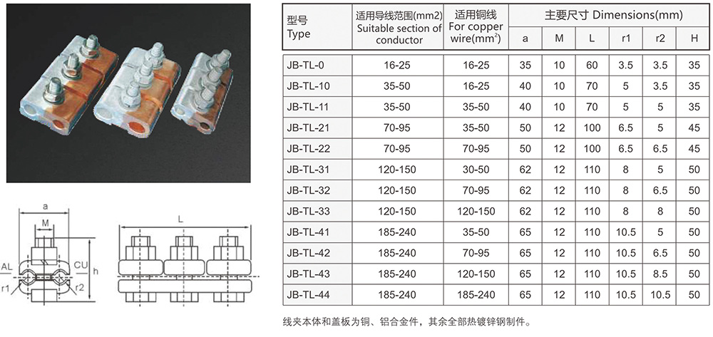 JBT-TL型銅鋁并溝線夾
