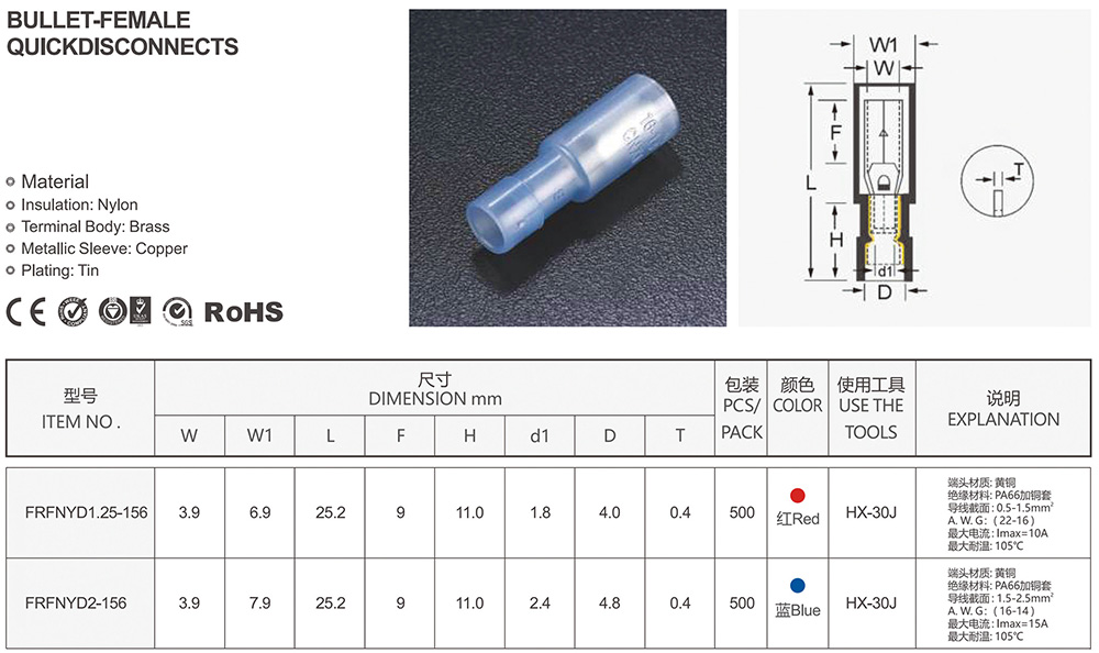 圓形預絕緣端頭(RV型)
