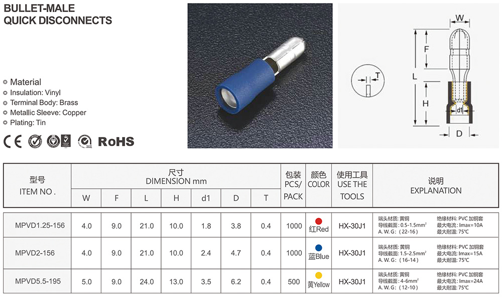 圓形預(yù)絕緣端頭(RV型)