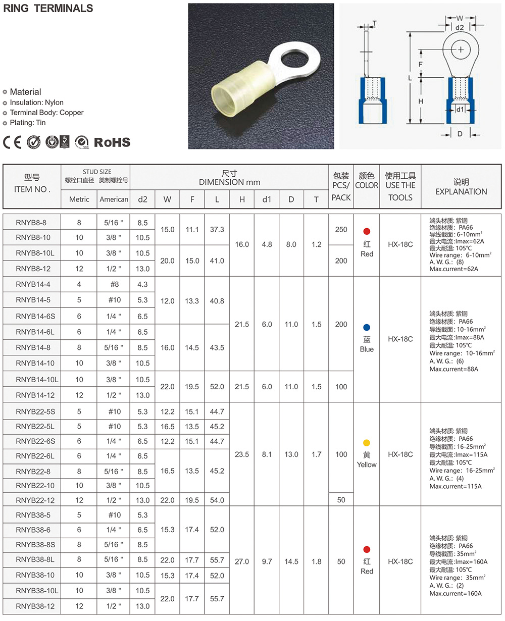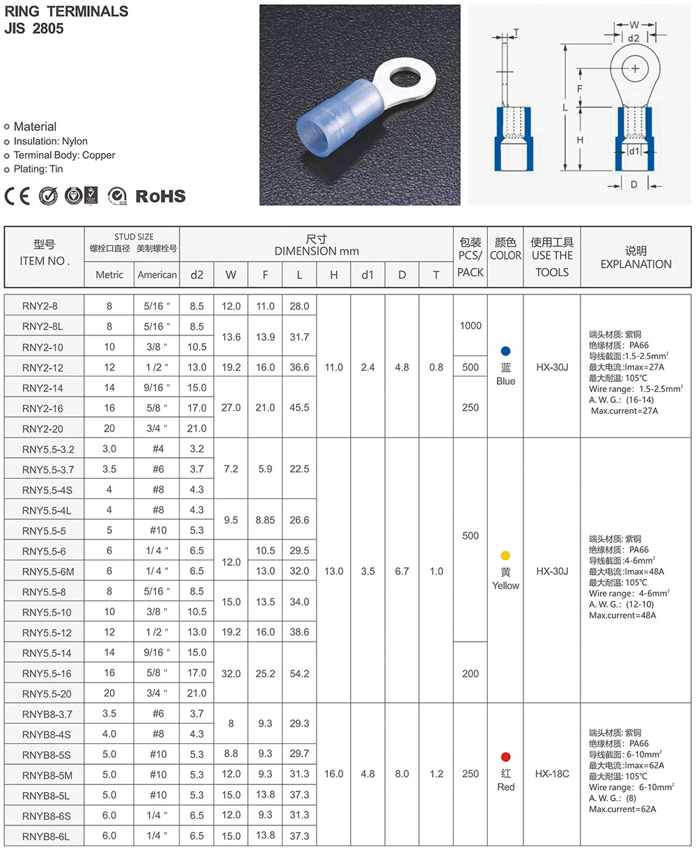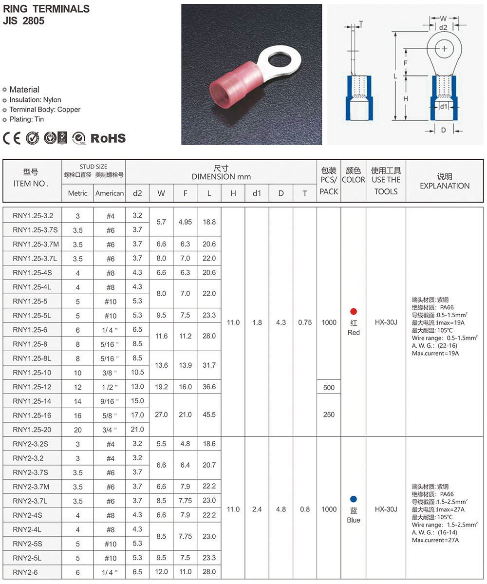 圓形預絕緣端頭(RV型)