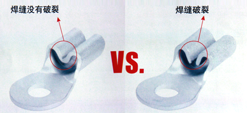 七、公司擁有精湛的焊接技術(shù),精選優(yōu)質(zhì)焊接材料,在裸端子尾部接縫處實(shí)施銀焊,生產(chǎn)出高品質(zhì)的焊接端子,確保壓著后不會(huì)產(chǎn)生破裂,及時(shí)在惡劣的使用環(huán)境下,仍能擁有強(qiáng)勁牢靠的拉拔力,且經(jīng)過低溫?zé)崽幚?,以增?qiáng)抗拉強(qiáng)度并確保物理性能指標(biāo)。 |
